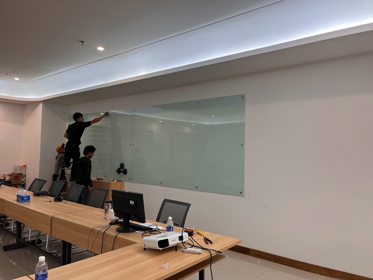 Bảng kính cường lực màu trắng 8mm có bề mặt đẹp mịn tương thích với bất kỳ dấu và lau đi một cách dễ dàng và không để lại vết hay bóng mờ, Bảng kính cường lực màu trắng là sự lựa chọn hoàn hảo cho không gian làm việc của bạn